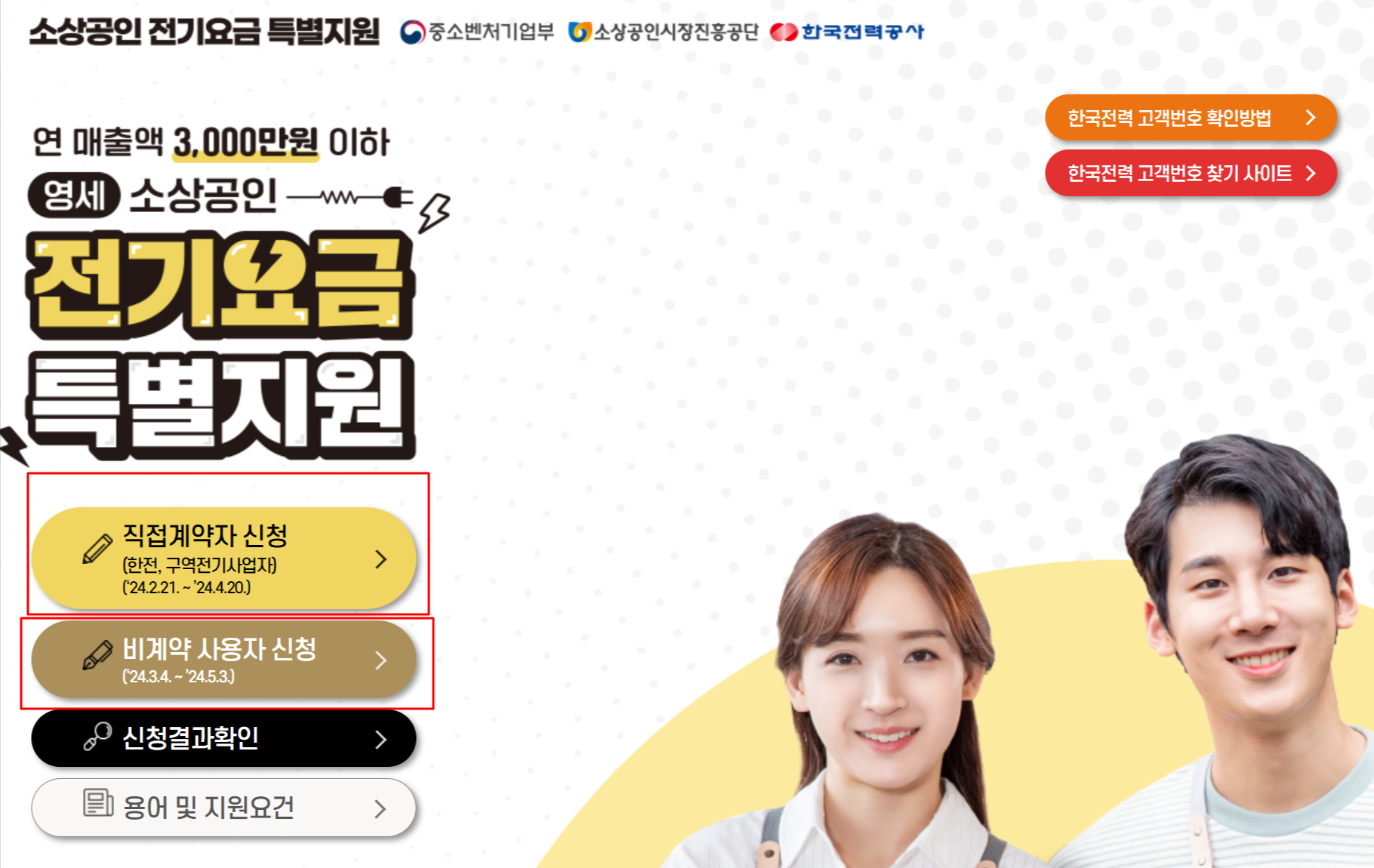 소상공인 전기요금 지원의 신청은 직접 계약자와 비계약 사용자로 구분되며, 각각의 신청 기간이 별도로 정해져 있습니다.