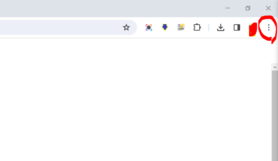 우선 브라우저 우측 상단에 보시면, 점 세개 버튼이 있을텐데요. 만약 점세개가 아니라면, 설정같은 텍스트로 쓰여있을 것입니다. 들어가는 방법은 아래와 같습니다.