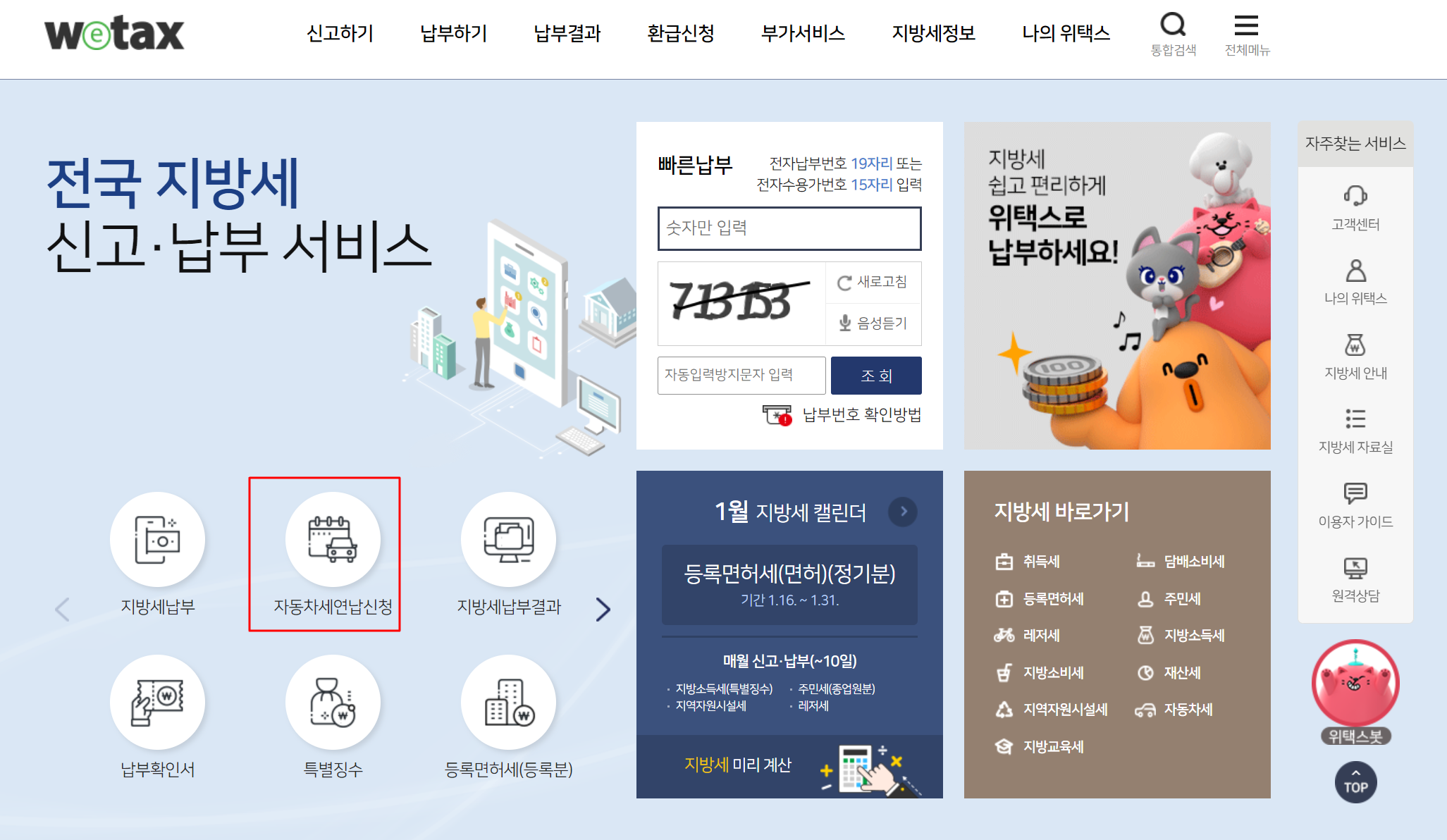 연납신청은 위택스 홈페이지를 보시면 아래와 같이 신청하실 수 있게 되어있습니다. (위택스 바로가기)