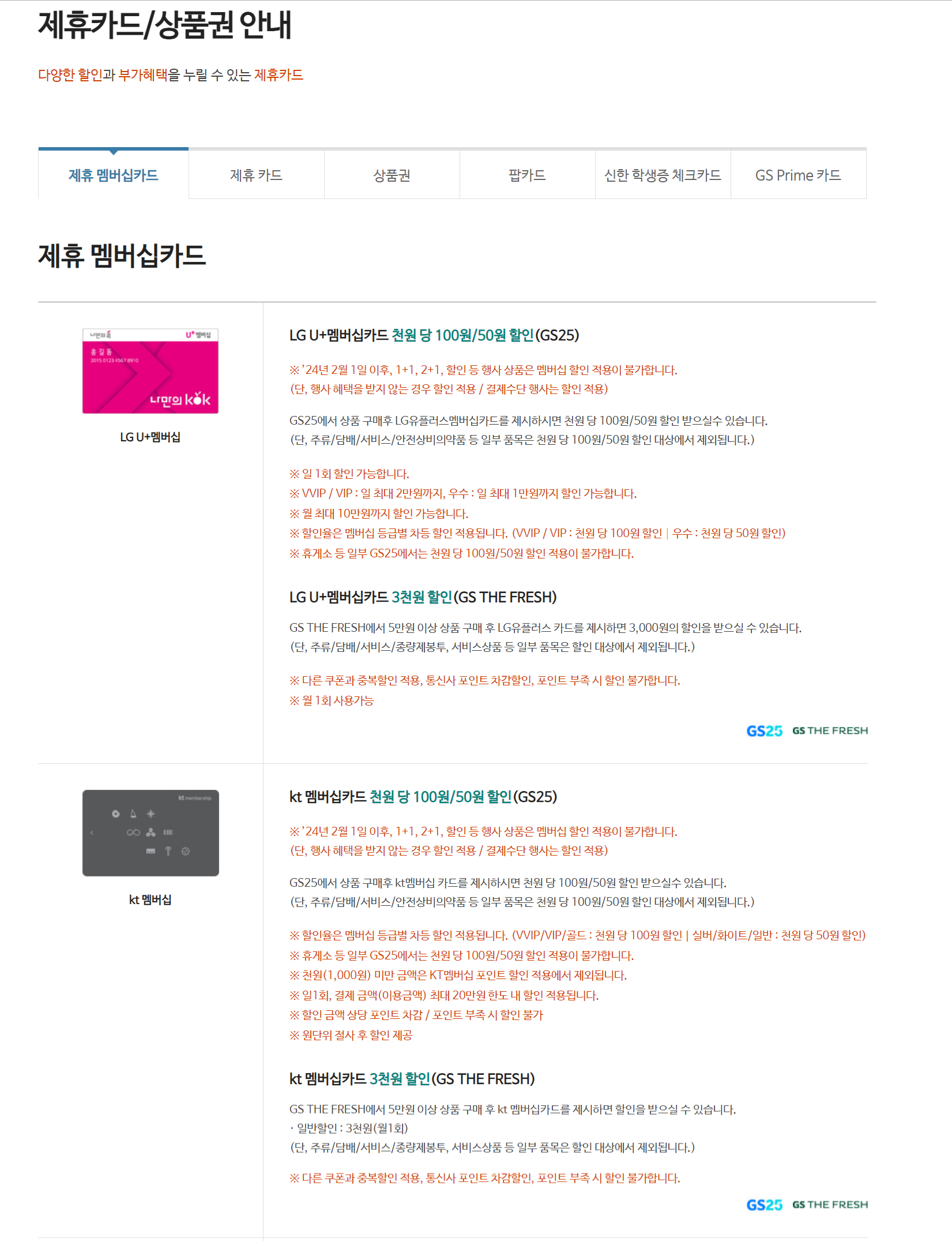 멤버십 혜택을 확인한 후 GS25 매장에서 상품을 구매할 때 할인 혜택을 받으려면 통신사 앱이나 웹사이트에서 할인 쿠폰을 발급받아야 합니다. 할인 쿠폰은 결제 시 제시해야 합니다.